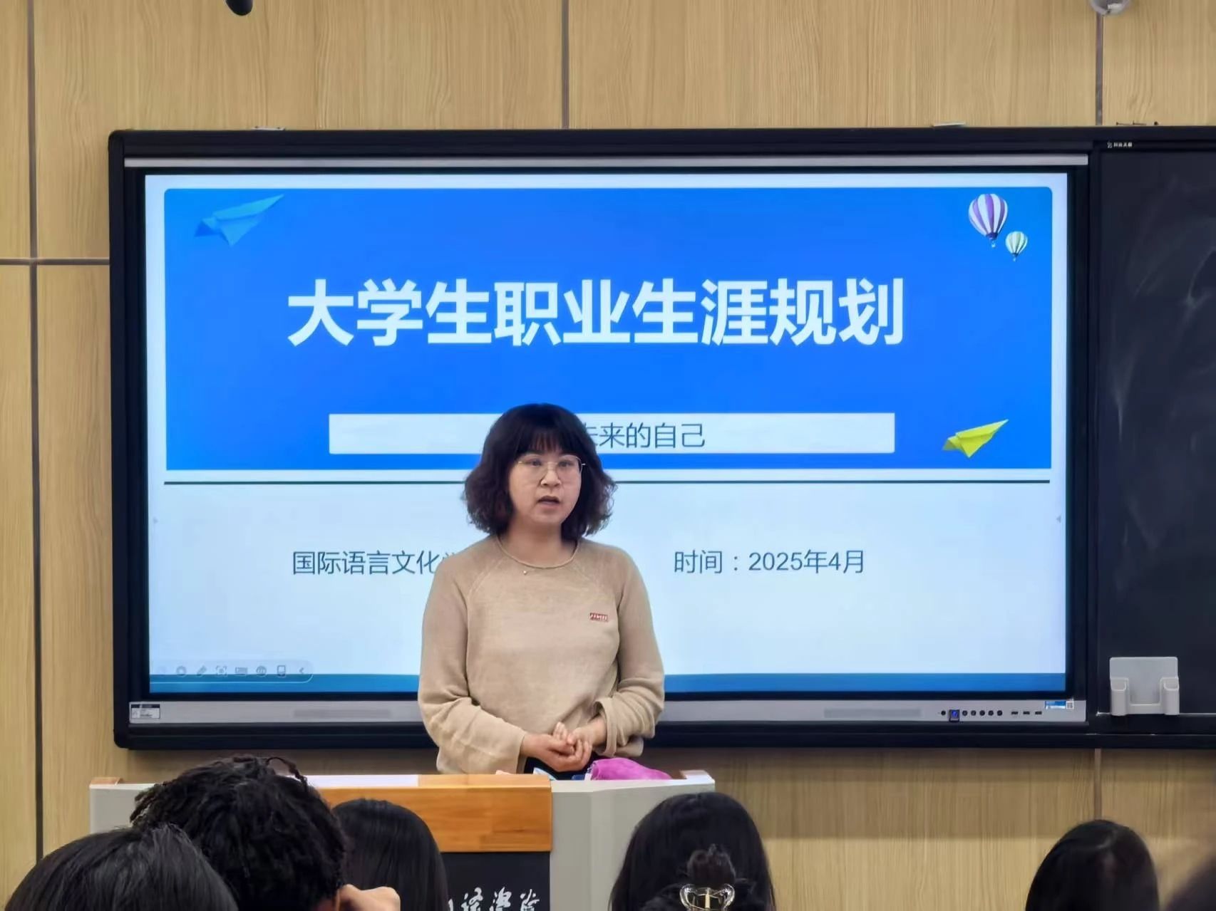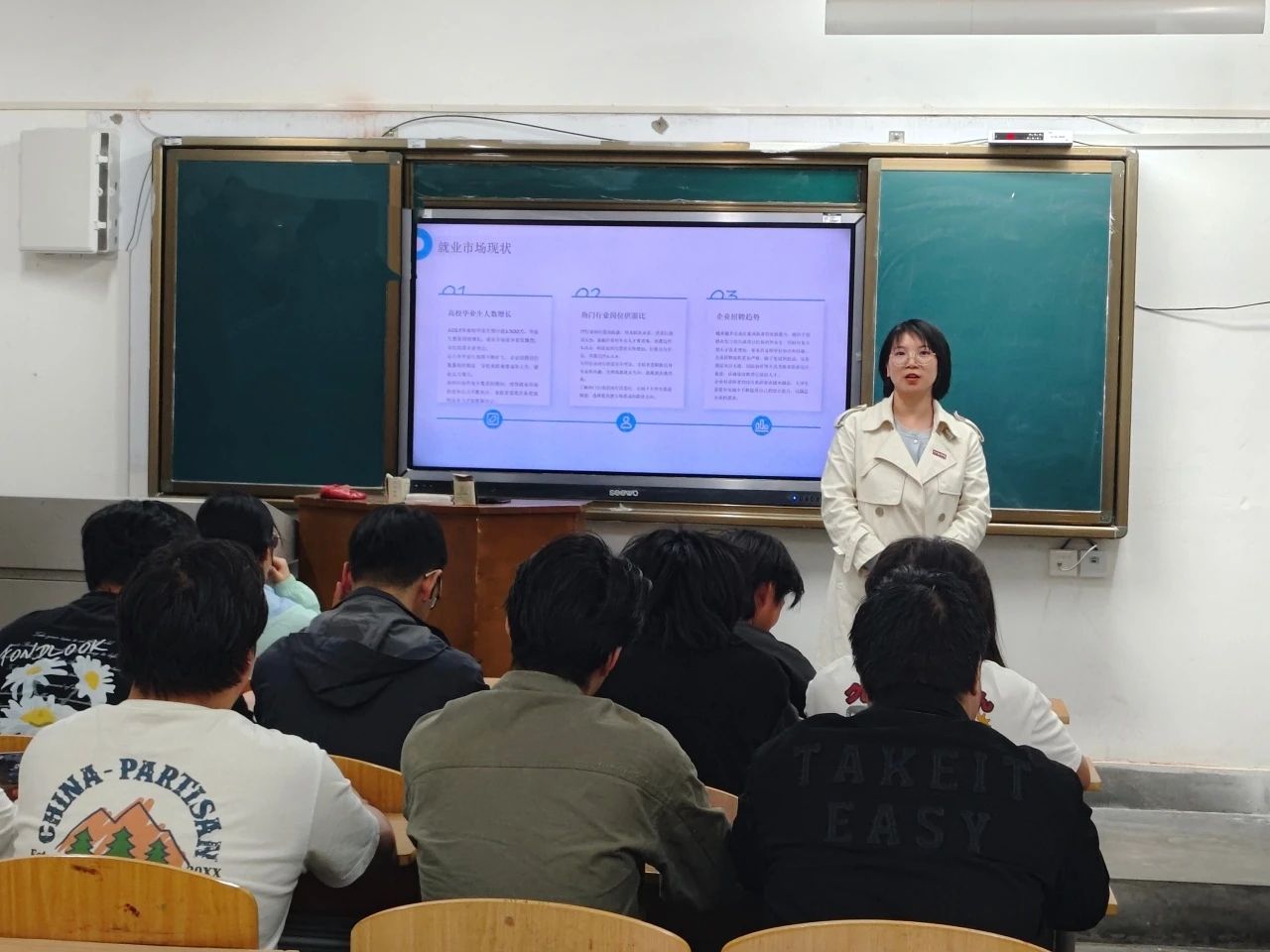 辅导员结合近年就业数据,剖析外语类各专业就业形势,指出“复合型人才”“实践能力”是小语种专业就业的关键竞争力,针对学生普遍存在的“盲目跟风考公”“职业目标模糊”等问题,提出“兴趣+能力+行业需求”三维定位法。