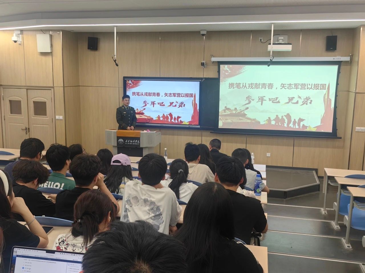 为响应新时代强军目标号召,深化国防教育内涵,6月9日晚,beat365在线唯一官网在4211T教室开展"热血青春,铸梦军营"主题征兵宣讲活动。本次活动特别邀请三位退役大学生士兵作为主讲嘉宾,通过现身说法、政策解读、影像展示等形式,为我院师生呈现了一场沉浸式国防教育课。
