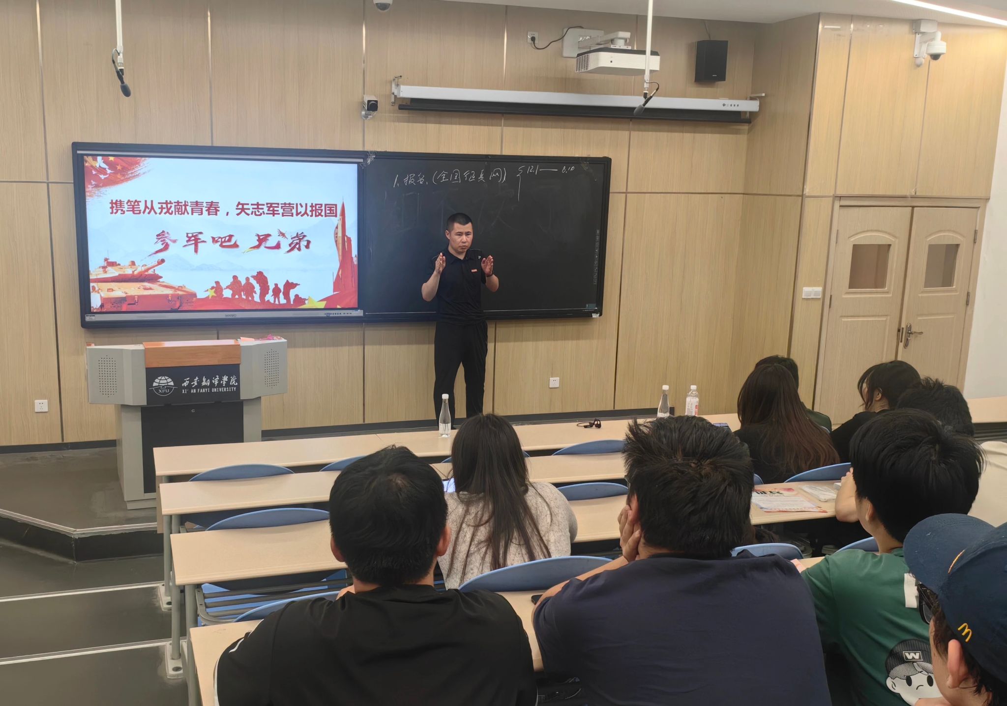 校武装部陈忠毅老师重点给学生们解读了征兵流程和学校为我校青年学子参军入伍所制定的经济补贴优待政策,也鼓励学生们积极响应国家号召,参军入伍,成为有梦想、有担当、有追求的新时代热血青年,以奋发有为的精神面貌投身于强军实践。