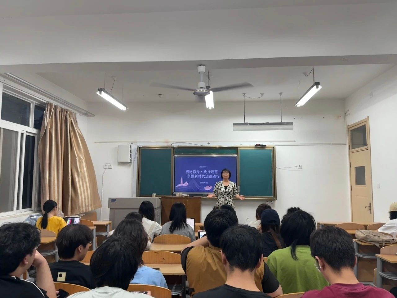 班会伊始,辅导员围绕“新时代大学生道德修养的核心内涵与实践路径”发表主题讲话,并结合生动案例,深刻剖析了学术诚信、网络文明、人际交往、社会公德等大学生日常学习生活中面临的道德议题,强调“德为才之帅,才为德之资”,良好的道德品质是立身之本,成才之基。辅导员重点强调了学术诚信,就学术不端真实案例,让学生深刻认识到独立思考与诚信写作对学术生命的重要性。辅导员指出,在信息纷繁复杂的当下,大学生更应坚守道德底线,明辨是非,自觉抵制不良风气,将道德认知内化于心、外化于行,努力成为有理想、有道德、有文化、有纪律的时代新人。