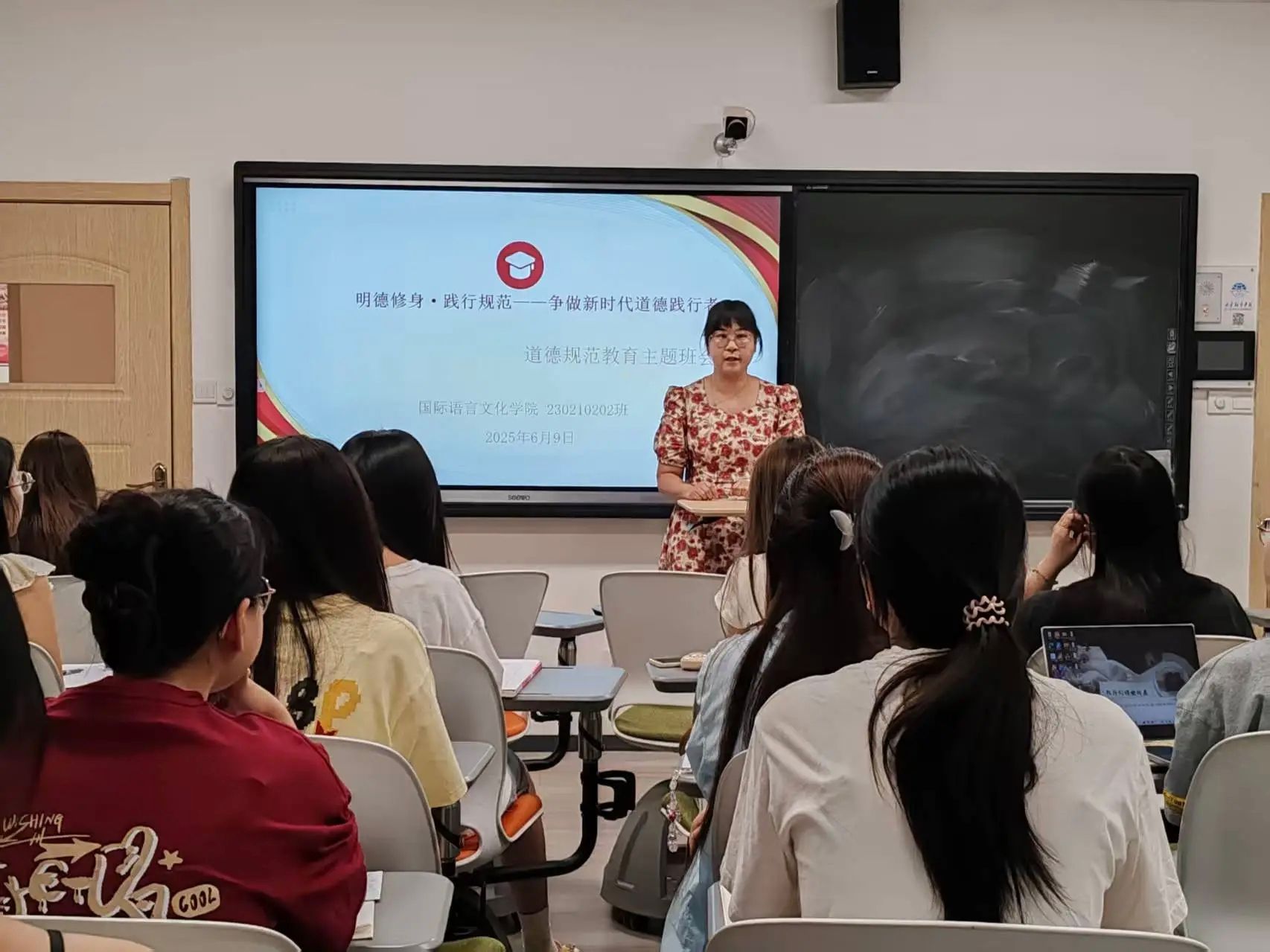 本次主题班会是学院落实立德树人根本任务、强化大学生思想道德建设的关键举措,不仅为青年学子提供了明晰的道德坐标与行为指南,更在学院内部营造出崇德向善、见贤思齐的浓厚氛围。学院将继续深化道德教育内涵,创新育人形式,引导全体学生在新时代征程中以德立身,用扎实的道德修养为青春梦想保驾护航。