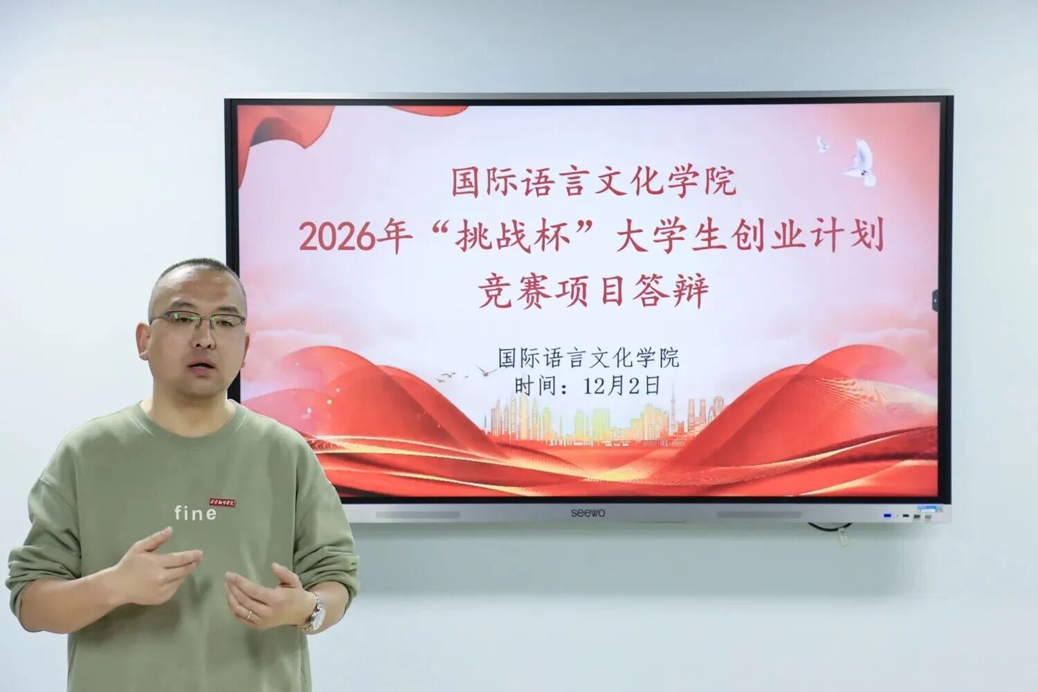 为激发学生的创新精神与创业意识,培育优秀创业项目,12月2日下午,beat365在线唯一官网在3120教室举办2026年“挑战杯”大学生创业计划竞赛院级决赛。学院特邀综合办公室主任张青丽、德语系主任王勃、法语系主任王姗姗、西俄系主任张力心、西班牙语教研室主任杨茜担任评委。