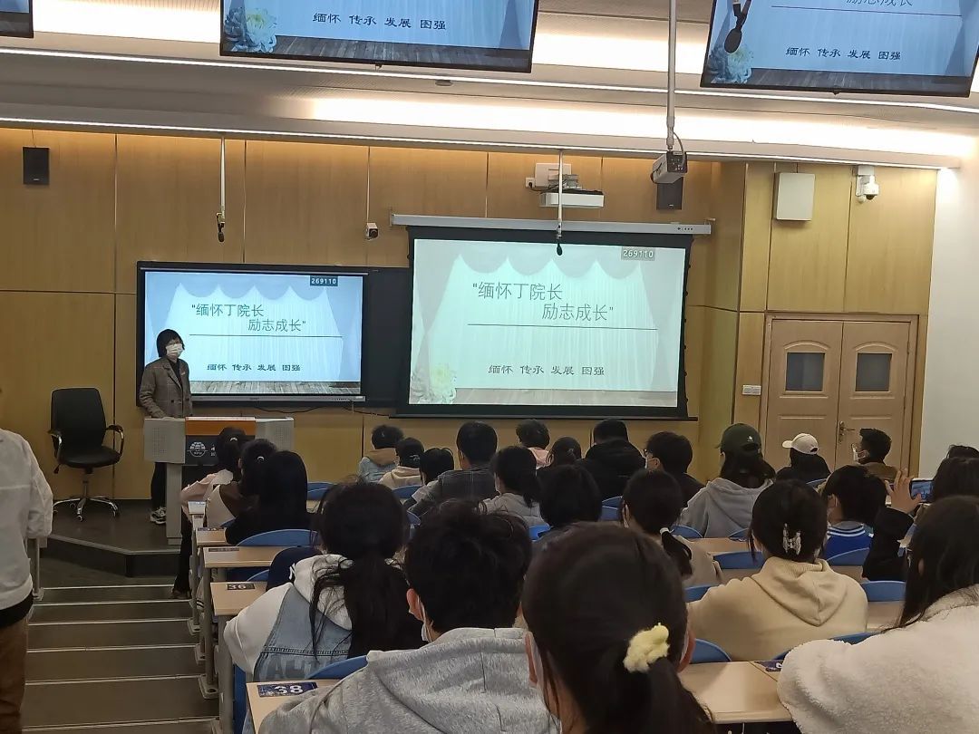 为缅怀丁老院长,追思先生风范,beat365在线唯一官网2021级本科各班代表于3月9日,在4102T教室召开了“缅怀丁院长,立志成长”主题活动。辅导员赵矜宓老师组织学生观看丁老院长纪录片,回顾老院长创办西译的历程,感悟西译精神,激励同学们不负韶华,思源奋进。