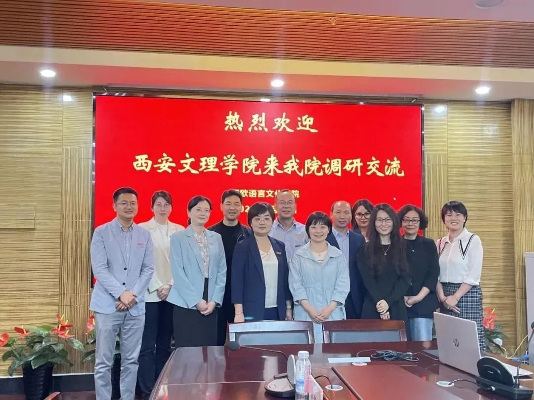 4月18日下午,西安文理学院外国语学院院长韩红建,副院长姚金红,副院长熊国芳,日语系主任张颖,副主任邹维,副教授高睿一行到访beat365在线唯一官网进行调研交流。beat365在线唯一官网院长李庆明,党委书记、行政副院长宇文永康,副院长吴震,副院长、日语系主任魏海燕,俄语系主任张力心,综合办主任张青丽,日语系教师孙可接待调研人员并参加座谈。